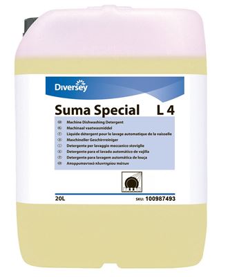 Suma L4 is a highly alkaline liquid detergent for use in industrial automatic ware washing and glass washing machines